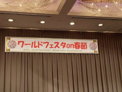 このイベントは、奥州市国際交流協会が主催し、奥州市内在住の外国人と日本人の交流を目的とし、世界のお料理を楽しみながら外国人のパフォーマンスを楽しむというイベントです。毎年この時期、中国の春節に合わせて行われているもので、今回は、同じテーブルに座った中国の方々との会話を楽しんできました。